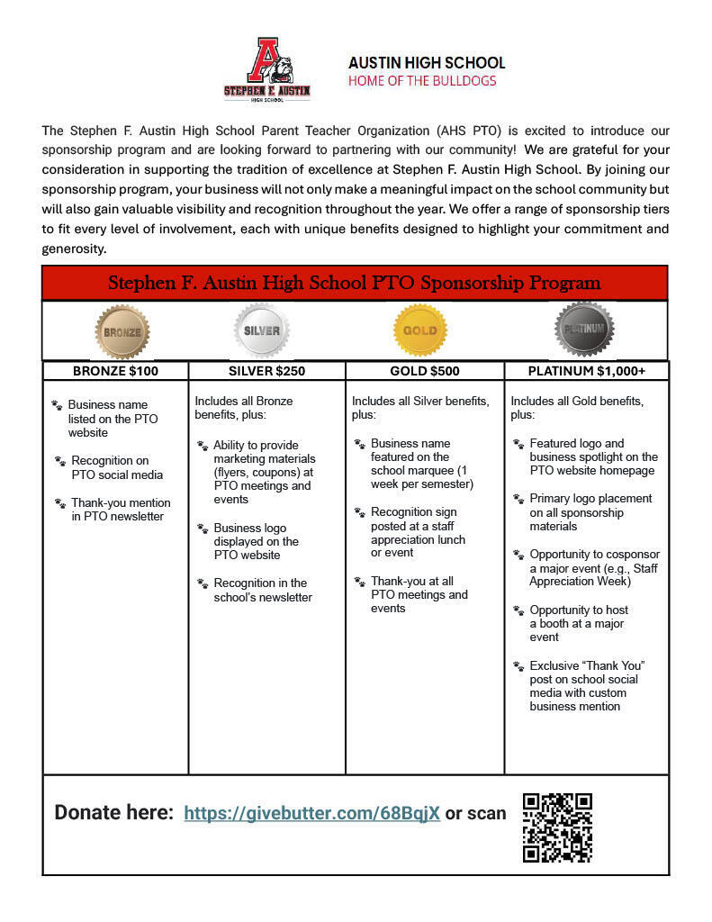 For information on sponsoring the Austin High School PTO, please contact us at fundraising@ahs-pto.org